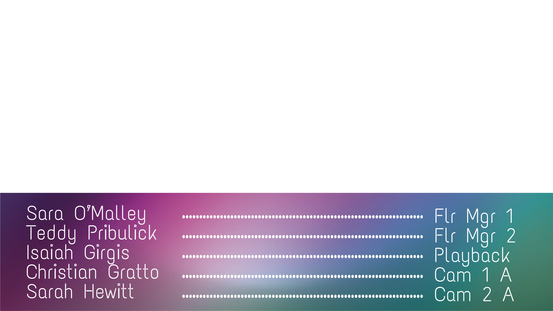 Entertainment - Designed as credits for show